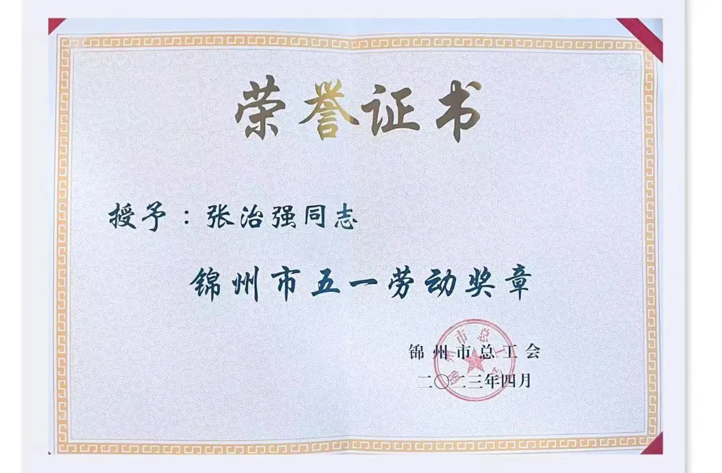 【喜報2】向奮斗者致敬----張治強榮獲錦州市五一勞動獎?wù)?/strong>